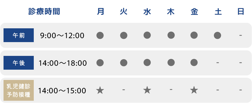 - 予防接種は★以外の時間帯にも行っておりますが、可能な限り★の時間帯に接種していただけますと幸いです。